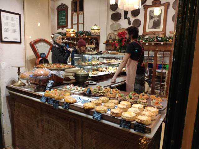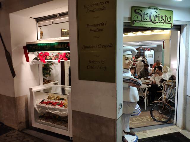 Die Bäckerei Santo Cristo – Horno Santo Cristo – liegt mitten in der Fußgängerzone von Palma in der Calle de Sant Miquel. Sie ist eine bei den Touristen sehr beliebte Konditorei und Bäckerei mit Café, da sie nett hergerichtet ist. Sowohl die Auslagen mit frischen Teilchen und Kuchen als auch die Einrichtung des Cafés wirken sehr ansprechend und sie bietet sich deshalb während des Einkaufsbummels in der breiten Einkaufszone Calle St. Miguel gut für eine Verschnaufpause mit Käffchen und Kuchen an.